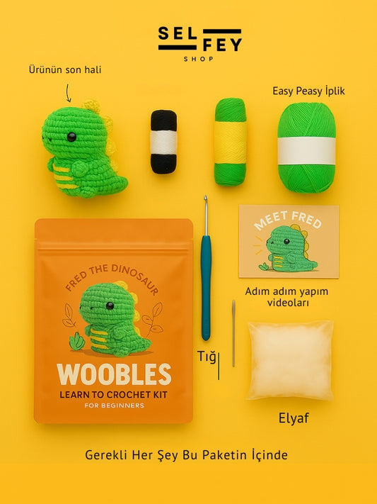 Amigurimi Fred The Dinosaur Tığ Kiti, Amigurimi Dinozor Örgü Set