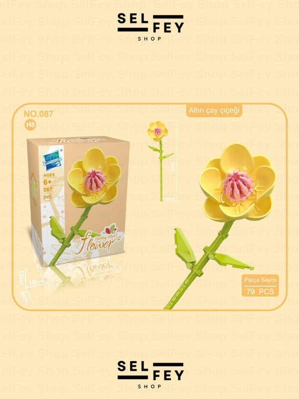 Lego Model Altın Çay Çiçeği Blok Çiçek