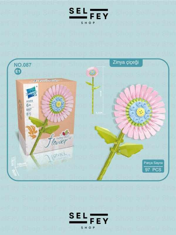 Lego Model Zinya Çiçeği Blok Çiçek
